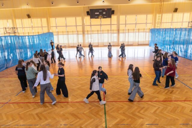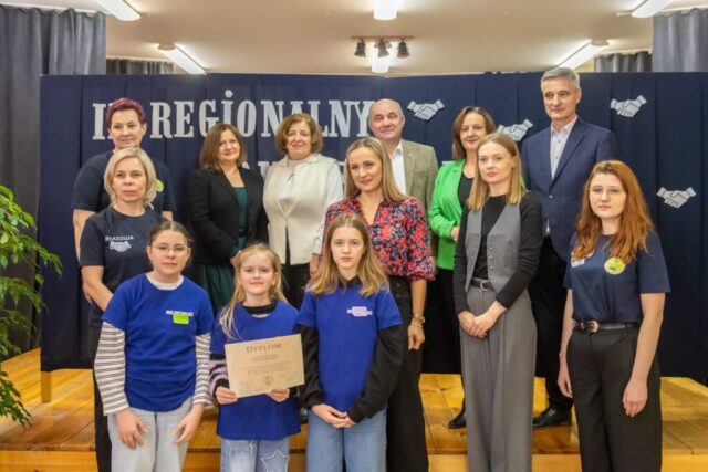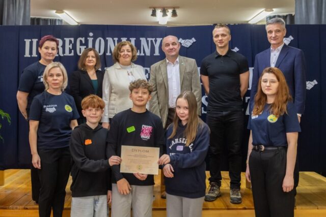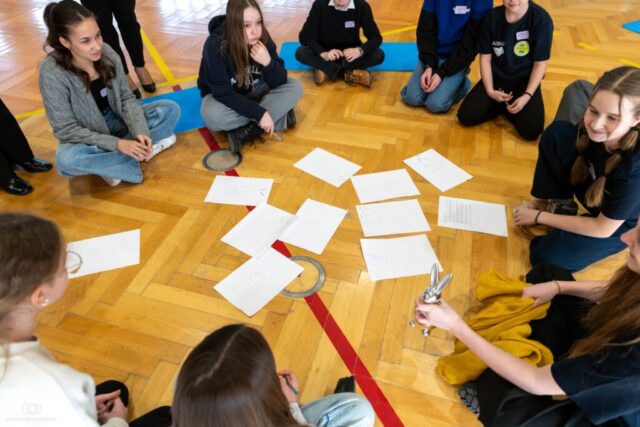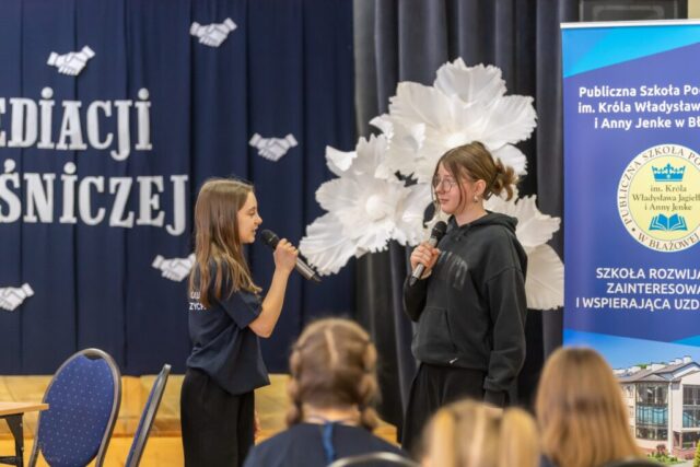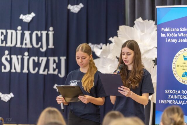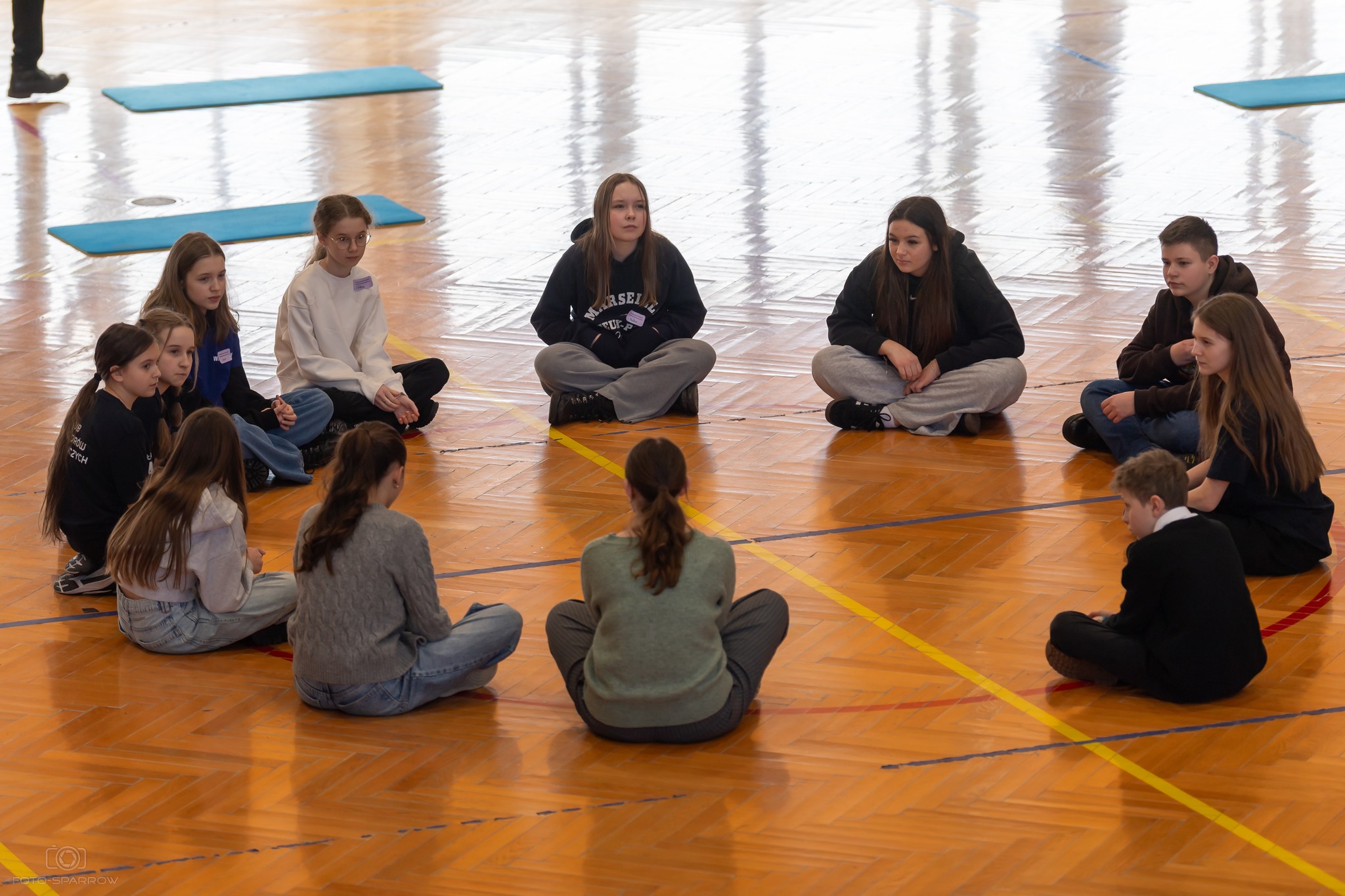 Nasi uczniowie ze Szkolnego Klubu Mediatorów Rówieśniczych wprowadzili gości w świat mediacji, przeprowadzając profesjonalne symulacje oraz gry integracyjne. Dzięki nim uczestnicy mogli w praktyce trenować empatię i umiejętności komunikacyjne, niezbędne w procesie rozwiązywania konfliktów, a także głębiej zrozumieć sens mediacji. Ważnym punktem programu była projekcja filmu „Mediacja ma moc” – sukcesu naszych uczniów, który zdobył II miejsce w V Ogólnopolskim konkursie organizowanym przez Kuratorium Oświaty i Sąd Okręgowy w Rzeszowie.